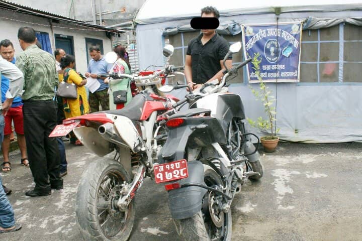 नयाँ बसपार्क प्रहरी प्रमुख प्रहरी निरीक्षक मोहनविक्रम केसीको नेतृत्वमा खटिएको  नयाँ बसपार्क प्रहरी र अपराध महाशाखा गोंगबु शाखाको संयुक्त टोलीले उनलाई पक्राउ गरेको हो  । सो  मोटरसाइकल नयाँ बसपार्कस्थित पर्वत होटलबाट बरामद गरिएको केसीले बताए ।