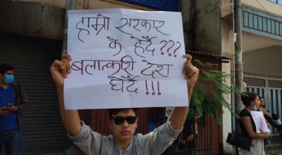 काठमाडौं । बलात्कार तथा यौन हिंसाविरुद्ध बालुवाटारस्थित प्रधानमन्त्रीको सरकारी निवास अगाडि युवाहरुले प्रदर्शन गरेका छन् । सुन्दरी प्रतियोगिताका आयोजक सदस्यबाट किशोरी बलात्कारमा परेको घटना सार्वजनिक भएपछि शुक्रबार बिहान युवाहरुले प्रधानमन्त्री निवास अगाडि प्रदर्शन गरेका हुन् ।