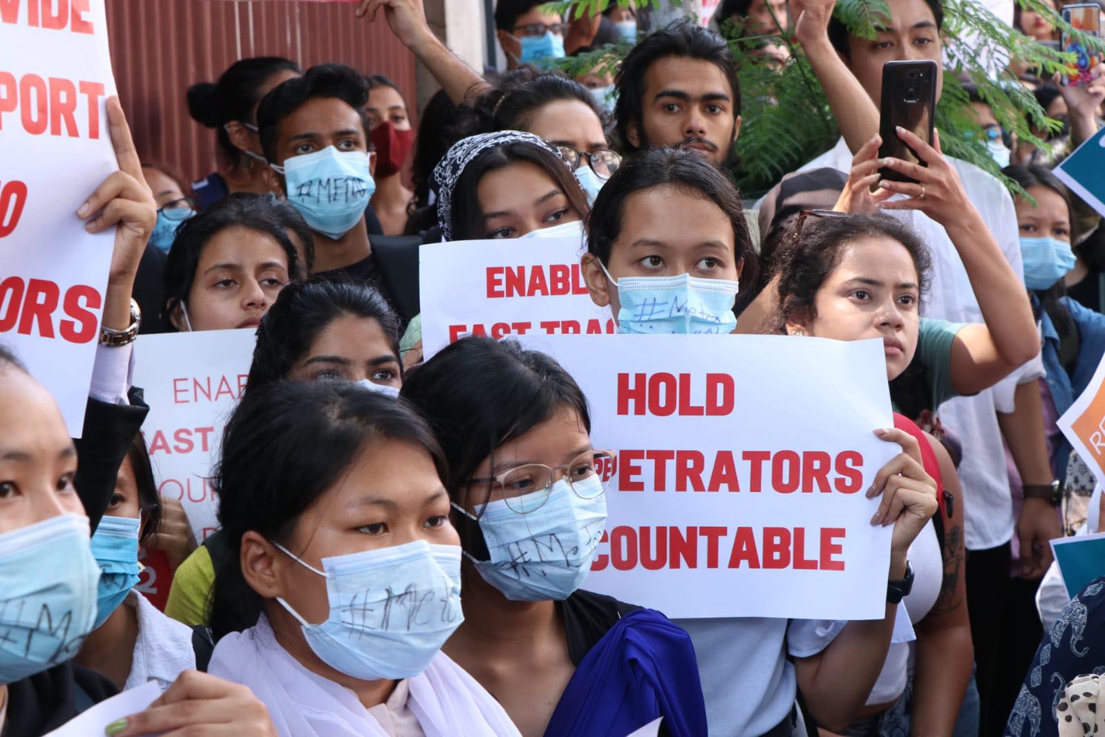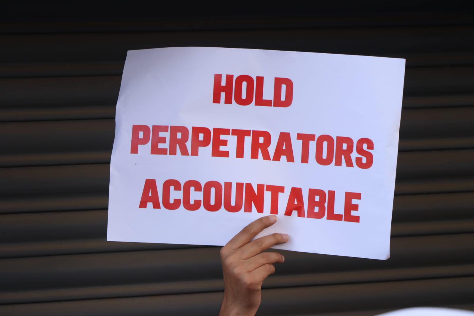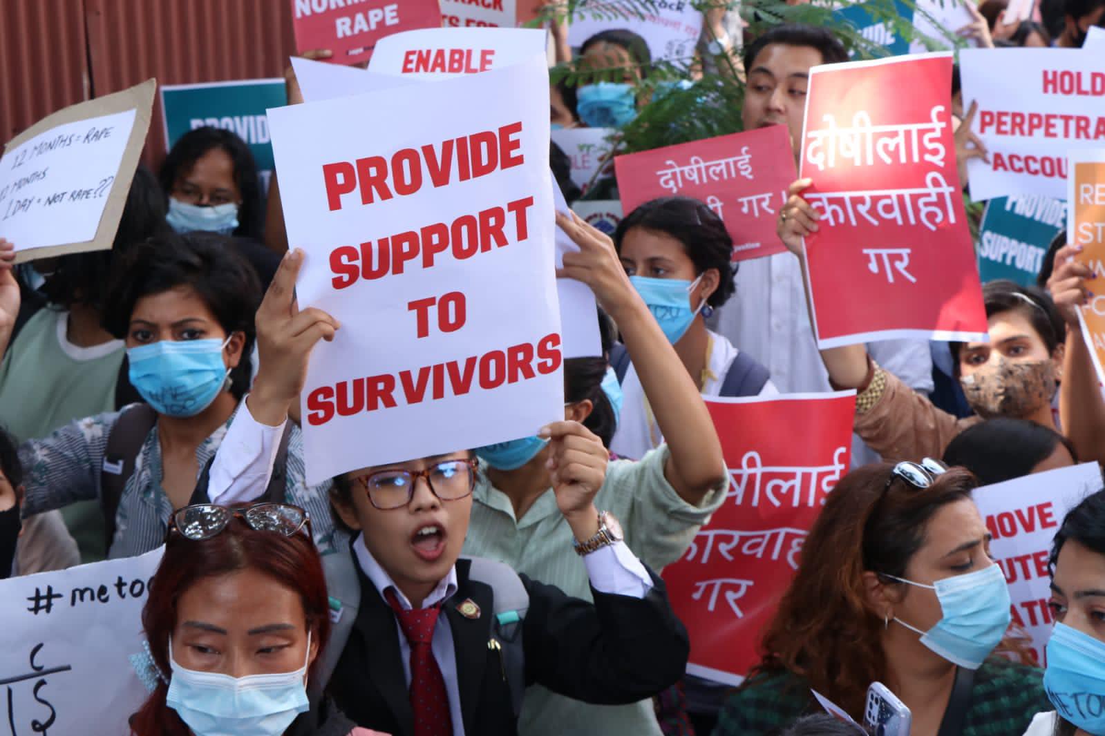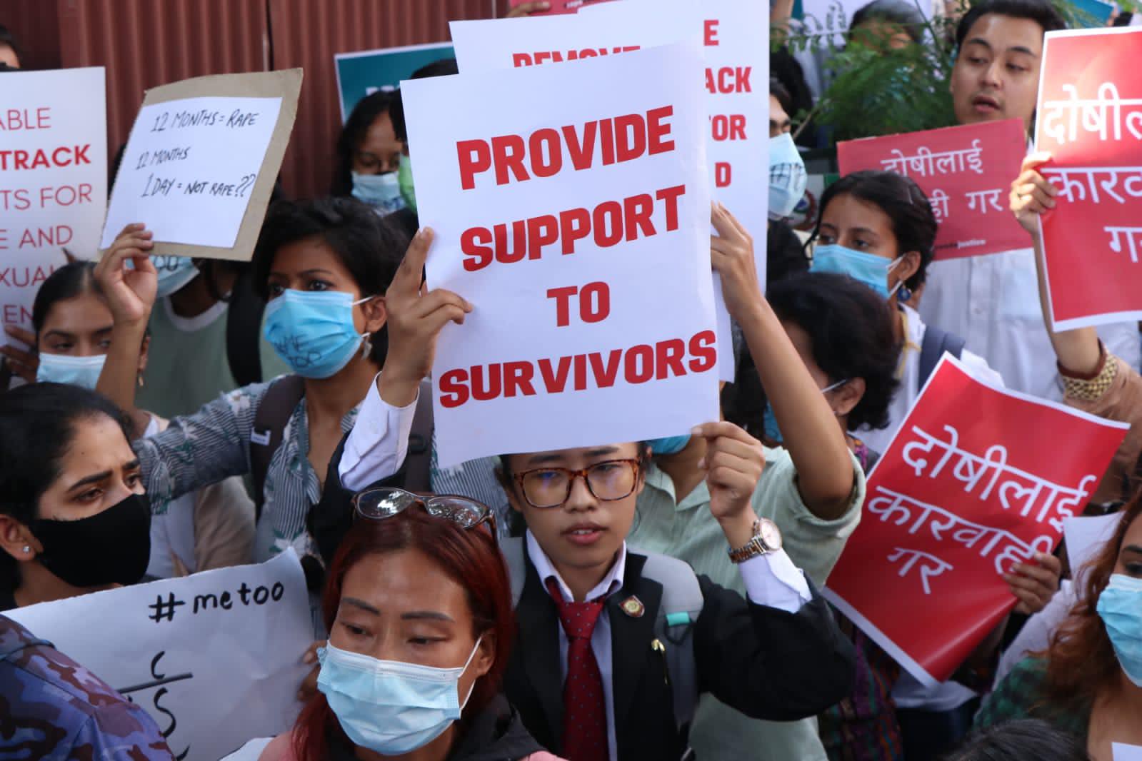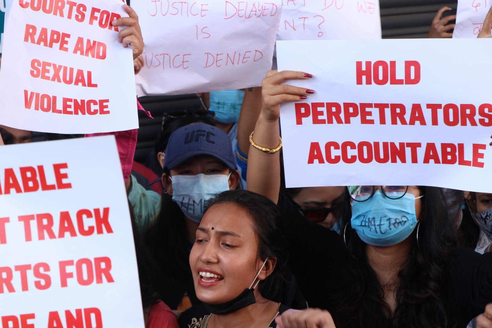 प्रदर्शनकारीले ‘दोषीलाई कारबाही गर, बलात्कार र यौनजन्य हिंसाका मुद्दाहरूको निर्णय गर्ने फास्ट ट्रयाक अदालतको स्थापना गर, बलात्कार मुद्दामा उजुरी गर्नेलाई हदम्याद हटाऊ’लगायत नारा लेखिएका प्लेकार्ड बोकेका थिए ।