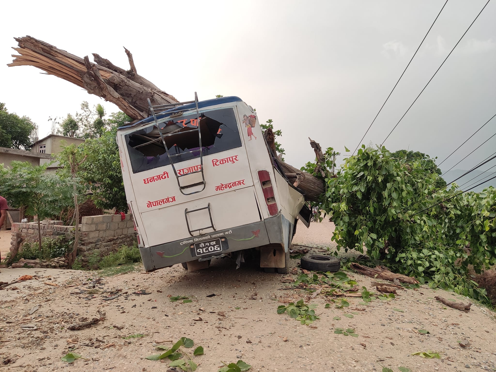 कैलालीको लम्कीचुवा-८ गप्का भन्ने ठाउँमा असनाको रुख ढल्दा से १ ख १८०६ नम्बरको बसमा क्षती भएको हो ।