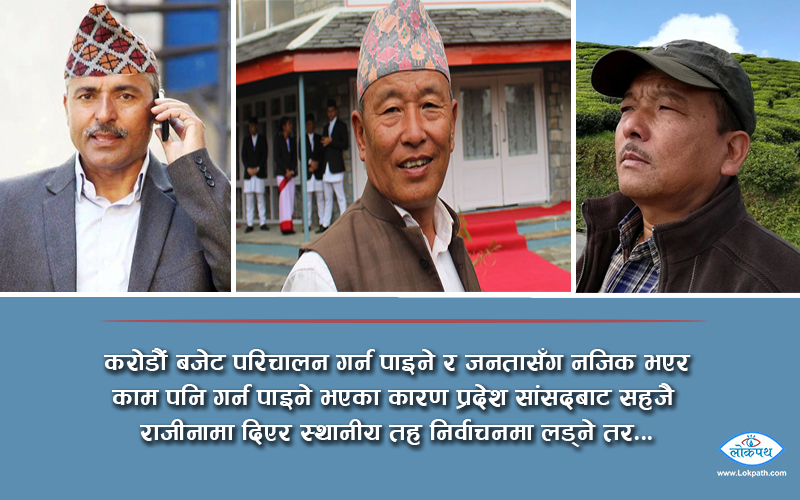 काठमाडौं । प्रदेश सांसदबाट राजीनामा दिएर तीन जना नेता स्थानीय तह निर्वाचनमा लडे । करोडौं बजेट परिचालन गर्न पाइने र जनतासँग नजिक भएर काम गर्न पनि पाइने भएका कारण सहजै राजीनामा दिएर स्थानीय तह निर्वाचनमा लड्ने नेताहरू हुन्, काजिमान कागते, विजय सुवेदी र कृष्ण थापा । यी तीनै जना नेता नेकपा एमालेका हुन् ।