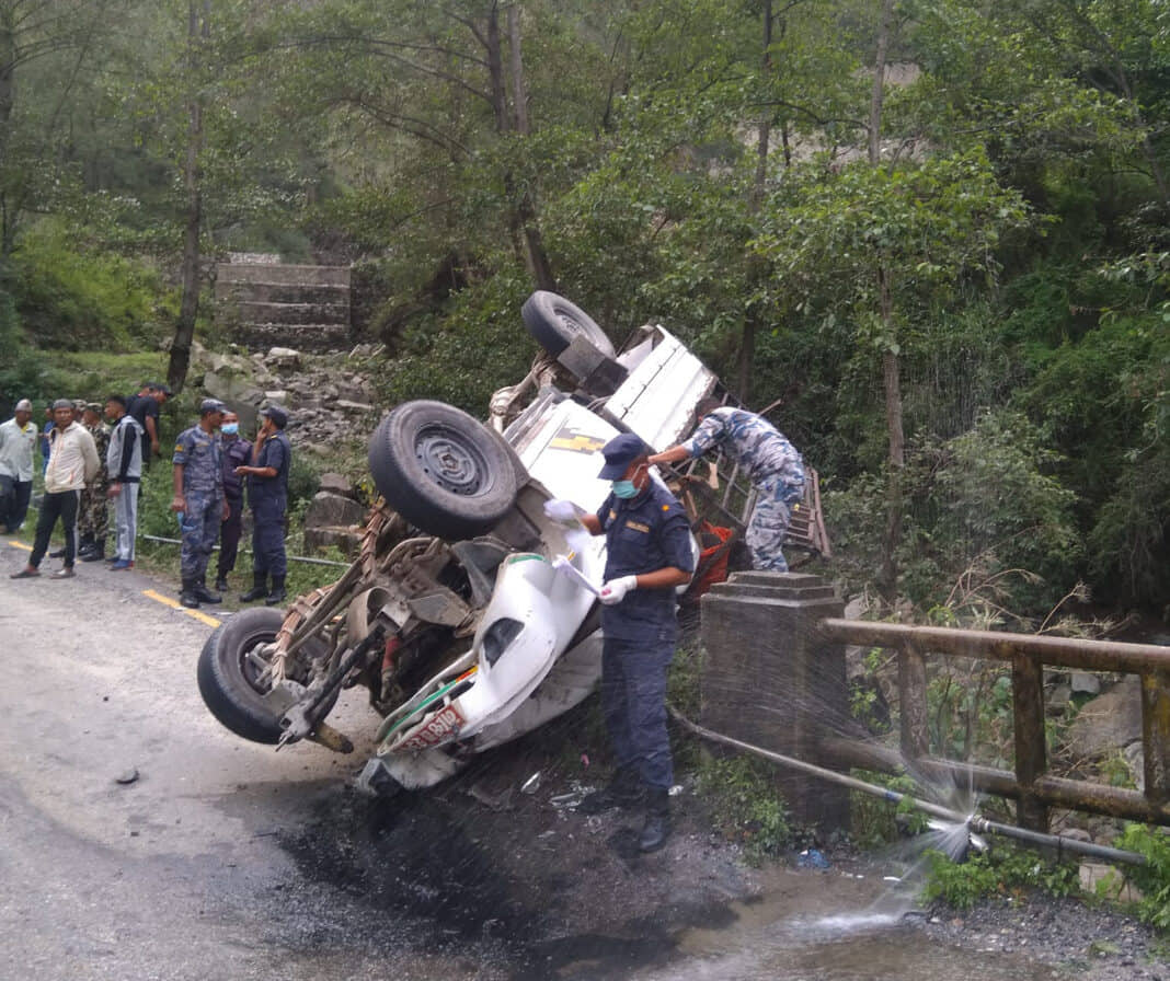 जिपमा सवार ८ जना मध्ये अन्य ५ जना घाइते भएको उनले बताए । तिव्र गतिका कारण जिप अनियन्त्रित भइ पुलमा ठोक्किएर दुर्घटना भएको उनले बताए ।