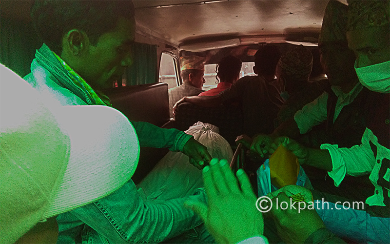 उनको शवलाई एम्वुलेन्समा राखेर पशुपति आर्यघाट लगिएको छ । निशानको काँडाघारीबाट आइतबार साँझ अपहरण गरिएको थियो ।