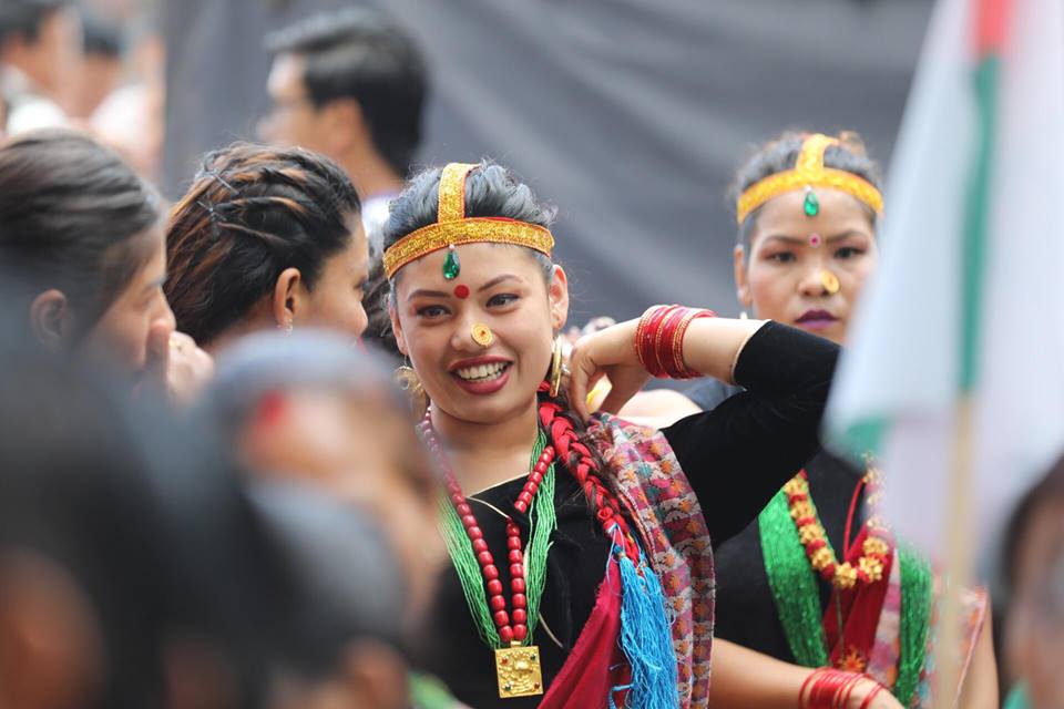 बिहीबार काठमाडौंमा निकालिएको –यालिमा जनजातिहरु आ–आफ्नो भेषभुषामा सजिएर आएका छन् ।