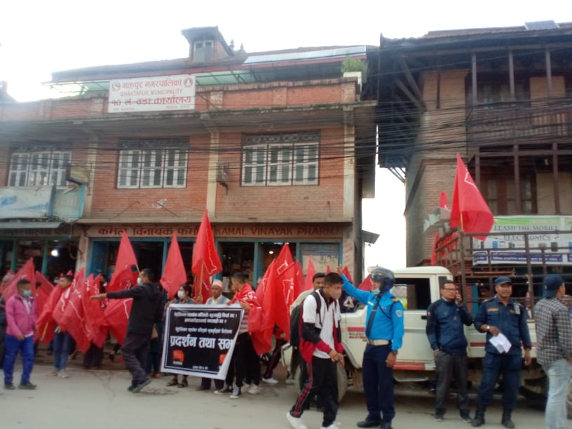 नेपाल मजदुर किसान पार्टी निकटको नेपाल क्रान्तिकारी विद्यार्थी संघ र नेपाल क्रान्तिकारी युवा संघ भक्तपुरले संयुक्त रूपमा प्रदर्शन तथा सभा गरेका हुन् ।