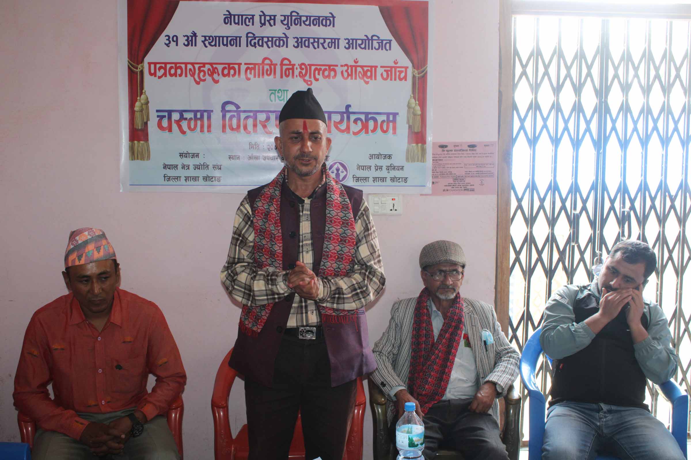 खोटाङ । नेपाल प्रेस युनियन खोटाङले पत्रकारका लागि निःशुल्क आँखा जाँच तथा चश्मा वितरण शिविर सञ्चालन गरेको छ । दिनरात ल्यापटप र कम्प्यूटरमा काम गर्नेक्रममा आँखामा समस्या निम्तिरहेका पत्रकारलाई लक्ष्यित गर्दै प्रेस युनियनको ३१ औं स्थापना दिवसको अवशरमा शुक्रबार निःशुल्क आँखा जाँच तथा चश्मा वितरण शिविर सञ्चालन गरिएको हो ।