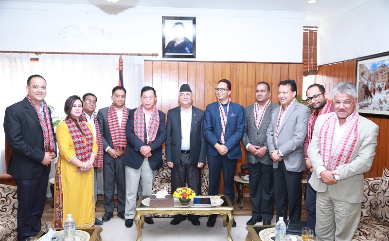 प्रधानमन्त्रीलाई भेट्न टेलिभिजन सञ्चालकहरुको संस्था मिडिया सोसाइटीका अध्यक्ष शुभशंकर कँडेल, निवर्तमान अध्यक्ष कैलाश सिरोहिया लगायतका मिडिया सञ्चालक बालुवाटार पुगेका थिए ।