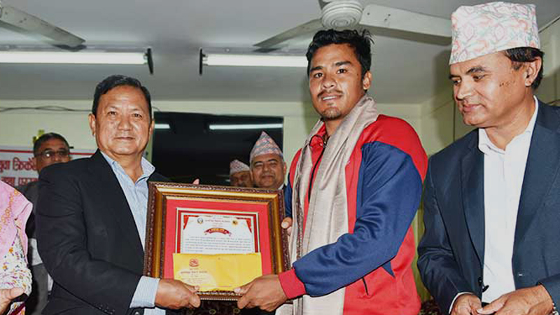 पोखरा । गण्डकी प्रदेश सरकारले नेपाली राष्ट्रिय क्रिकेटर करण केसीलाई नगदसहित सम्मान गरेको छ ।