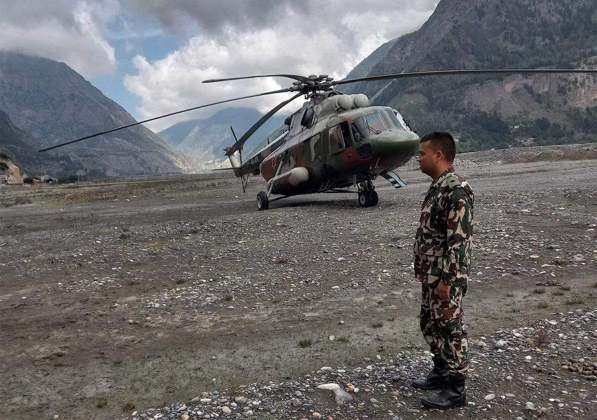खराब मौसमका बीच सेनाको हेलिकोप्टर सम्भावित दुर्घटना क्षेत्रतर्फ उडेको विमानस्थल कार्यालयले जनाएको छ । उक्त हेलिकोप्टर लार्जुङमा ल्यान्ड भैसकेको बताइएको छ।