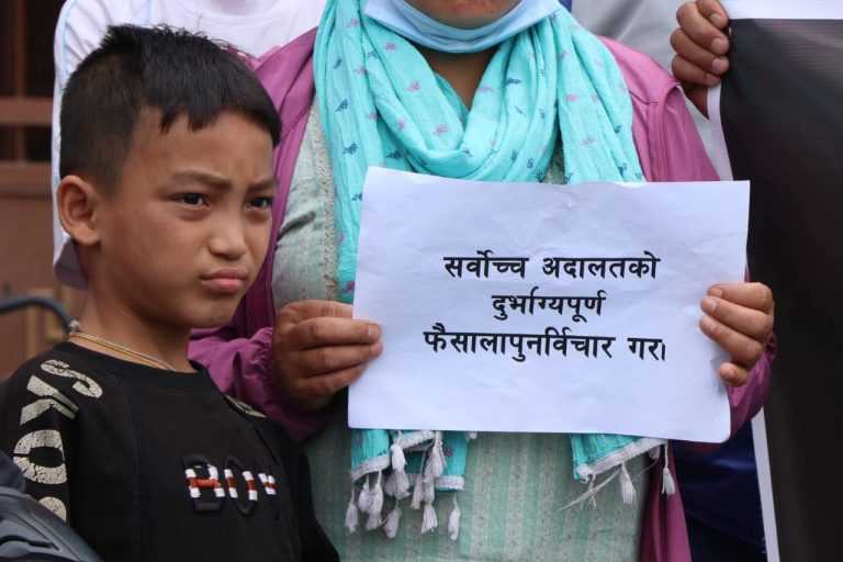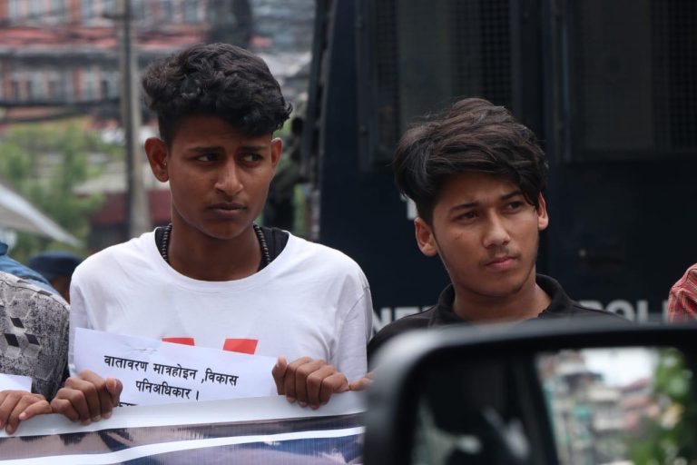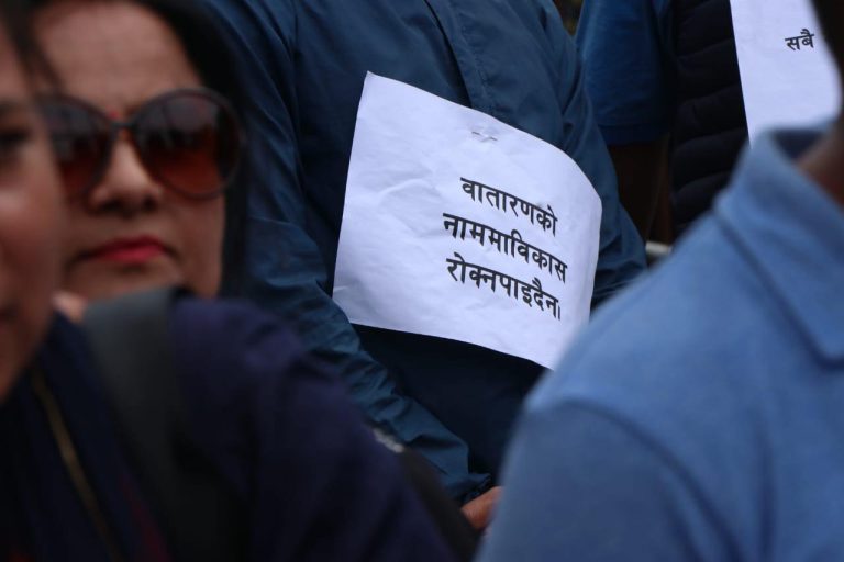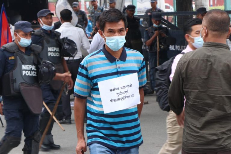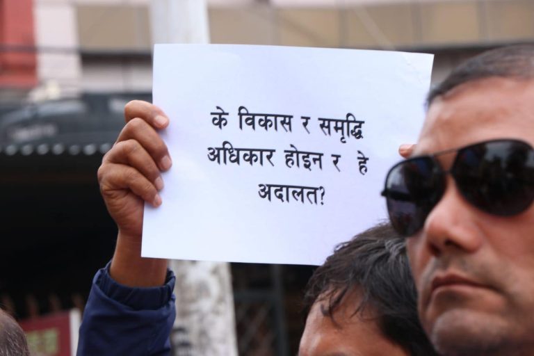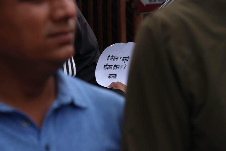 आइतबार माइतीघर मण्डलमा सर्वोच्चको आदेशविरुद्ध प्रदर्शन भएको हो । प्रदर्शनमा सहभागीले ‘के विकास र समृद्धि अधिकार होइन रु, कार्यपालिकाको कामप्रति हस्तक्षेप बन्द गर, ‘वातरणको नाममा विकास रोक्न पाइदैन’ प्लेकार्ड बोकेका थिए ।