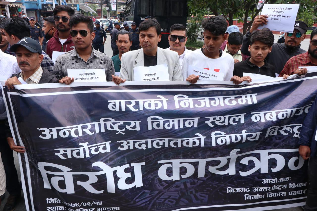 निजगढमा अन्तर्राष्ट्रिय विमानस्थल नबनाउन दिएको सर्वोच्चको आदेशविरुद्ध प्रदर्शन (फोटोफिचर)