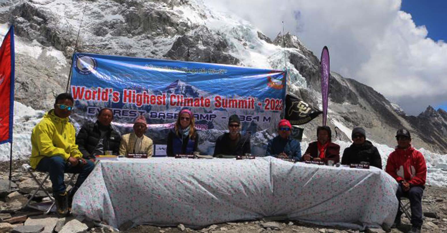 काठमाडौं । विश्वको सर्वोच्च शिखर सगरमाथाको आधार शिविरमा ‘जलवायु परिवर्तनसम्बन्धी शिखर सम्मेलन’ सम्पन्न भएको छ ।