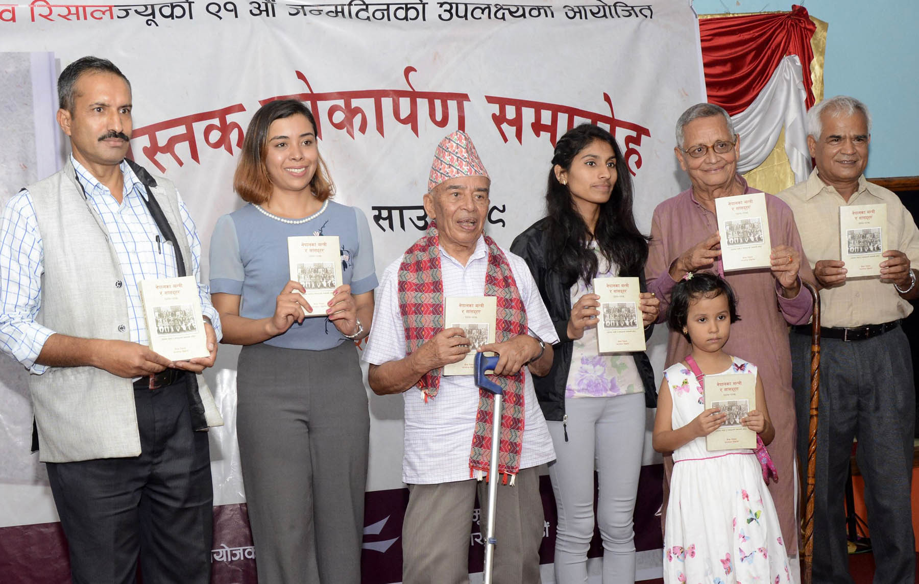 पत्रकार रिसालको ९१ औँ जन्मजयन्तीका अवसरमा पुस्तक सिकाइ समूहले आज यहाँ आयोजना गरेको कार्यक्रममा सो पुस्तक लेखकद्वयसहित देवेन्द्रराज पाण्डे र प्रा कृष्ण खनालले संयुक्त रुपमा सार्वजनिक गरेका हुन् ।