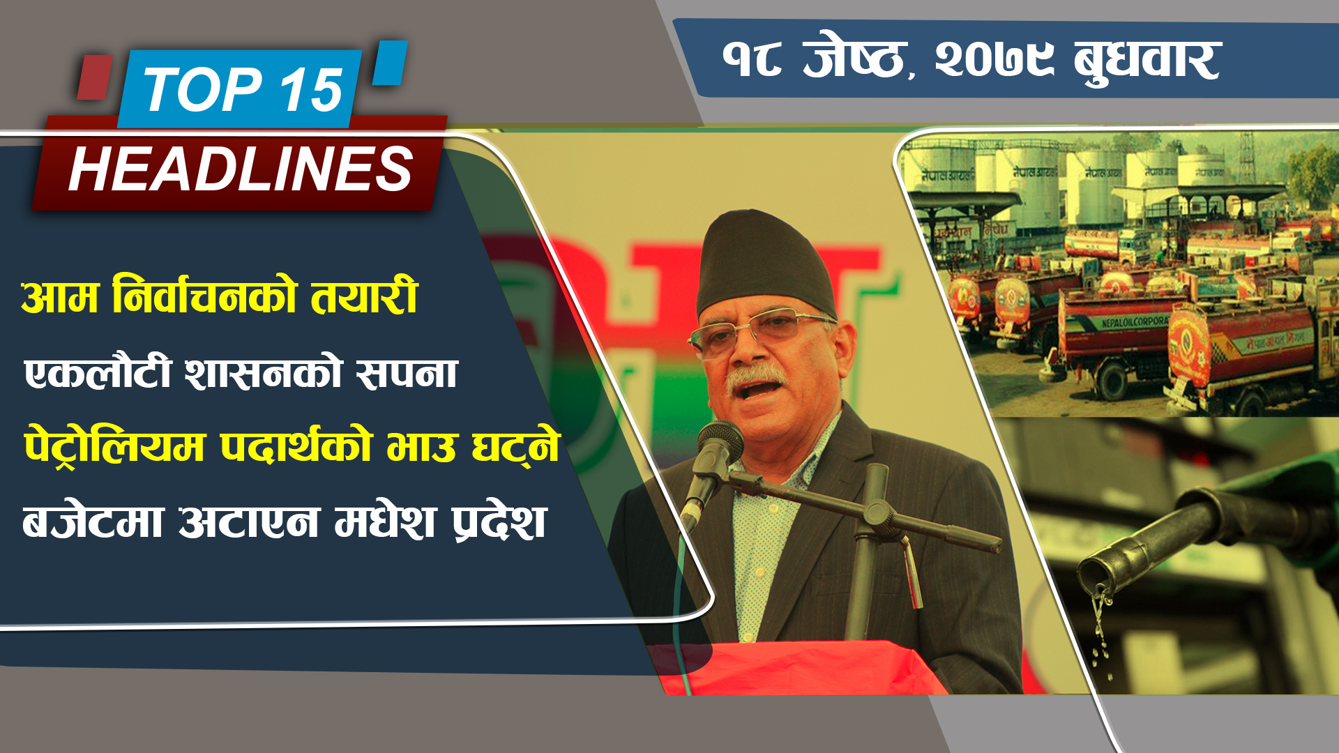१. स्थानीय तहको निर्वाचन सफलतापूर्वक सम्पन्न भएसँगै आम निर्वाचनको तयारीमा सरकार, आगामी कात्तिकको अन्तिमदेखि मंसिरसम्म प्रदेश र प्रतिनिधि सभाको निर्वाचन गर्ने तयारी ।