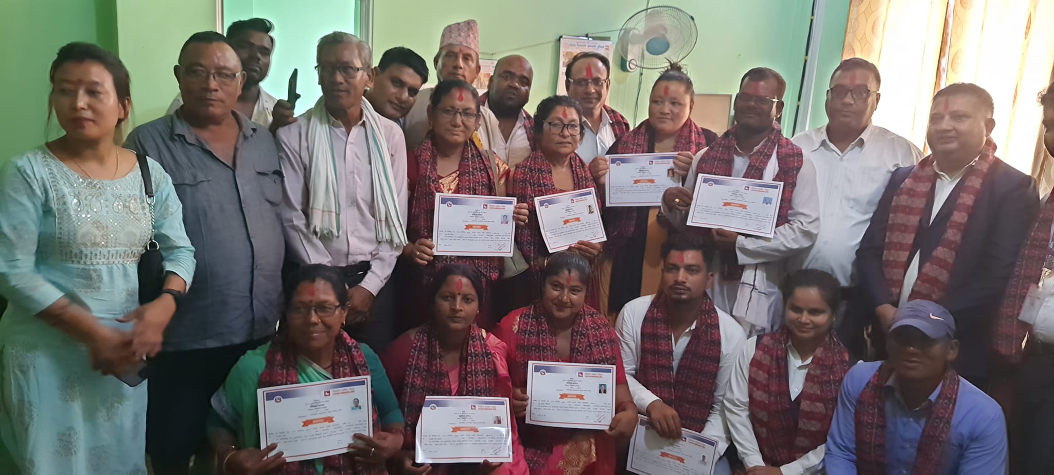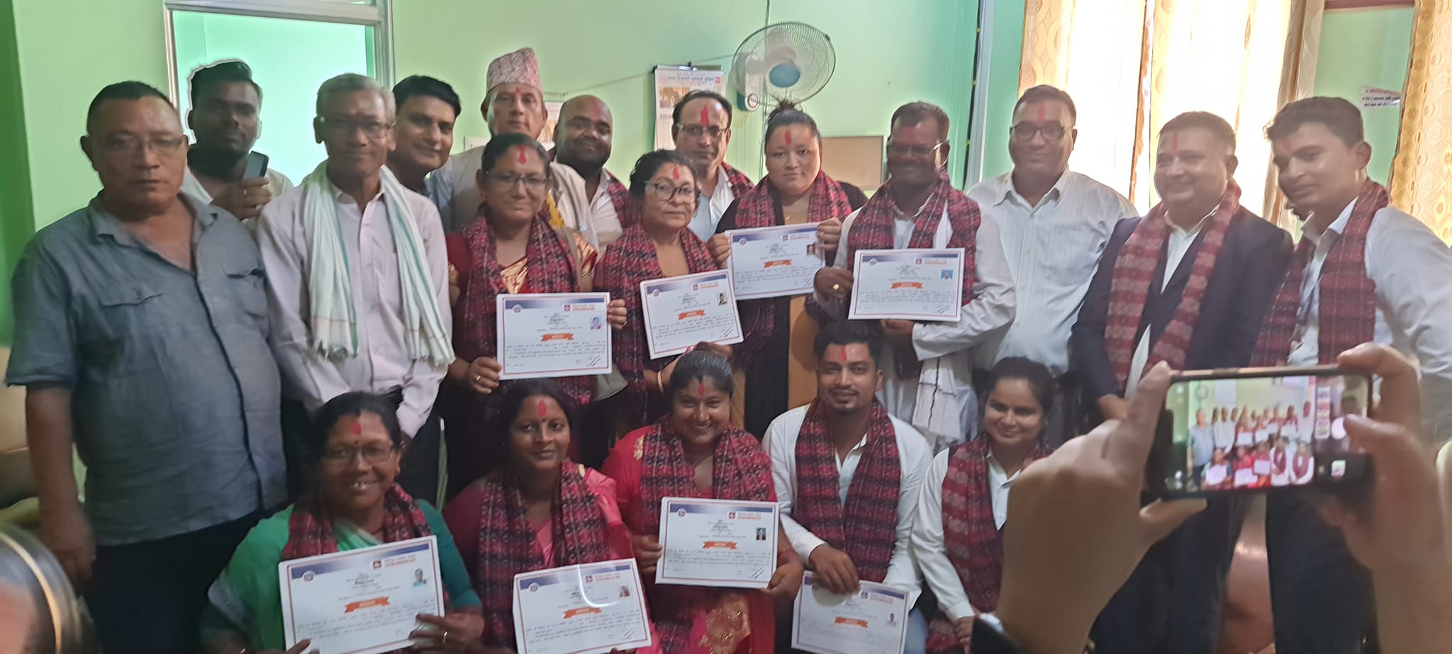 शपथ ग्रहण स्थगित भएपछि निर्वाचन अधिकृत टीकामणी न्यौपानेले प्रमुख प्रशासकीय अधिकृत चेतकुमार पोखरेलको कक्षमा कार्यपालिका सदस्यलाई प्रमाण–पत्र वितरण गरिसकेका छन् ।