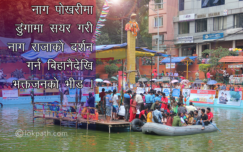 यस वर्ष पनि नागपोखरीलाई दुलही जस्तै सिँगारिइयो । रंगरोगन गरेर, फूलले सजाएर धपक्कै बल्यो नागपोखरी । दुध, अक्षता, दूबो लगायतका सामाग्री लिएर नाग पूजा गर्न तत्पर भक्तजनहरुसँगै काठमाडौंका मेयर विद्यासुन्दर शाक्य पनि सामेल भए ।