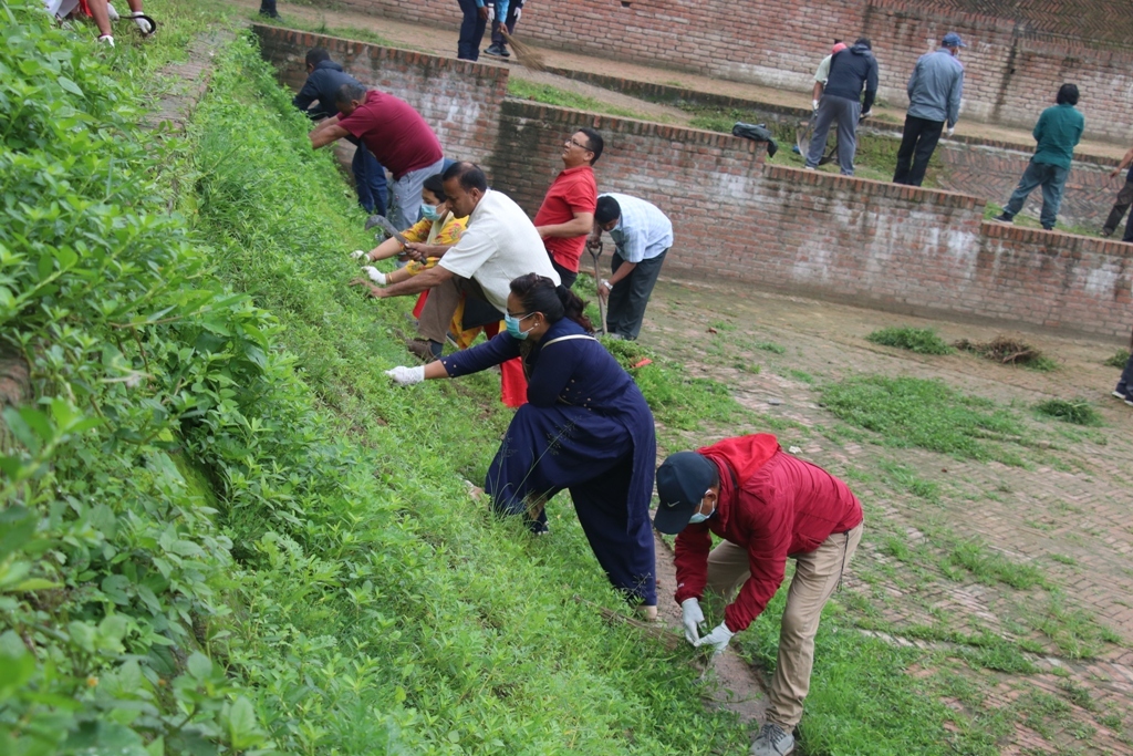 भक्तपुर । विश्व वातावरण दिवसको अवसरमा आइतबार भक्तपुर नगरपालिकाको आयोजनामा भक्तपुर-१ दुधपाटीस्थित भाज्या पुखुमा सरसफाइ गरिएको छ ।