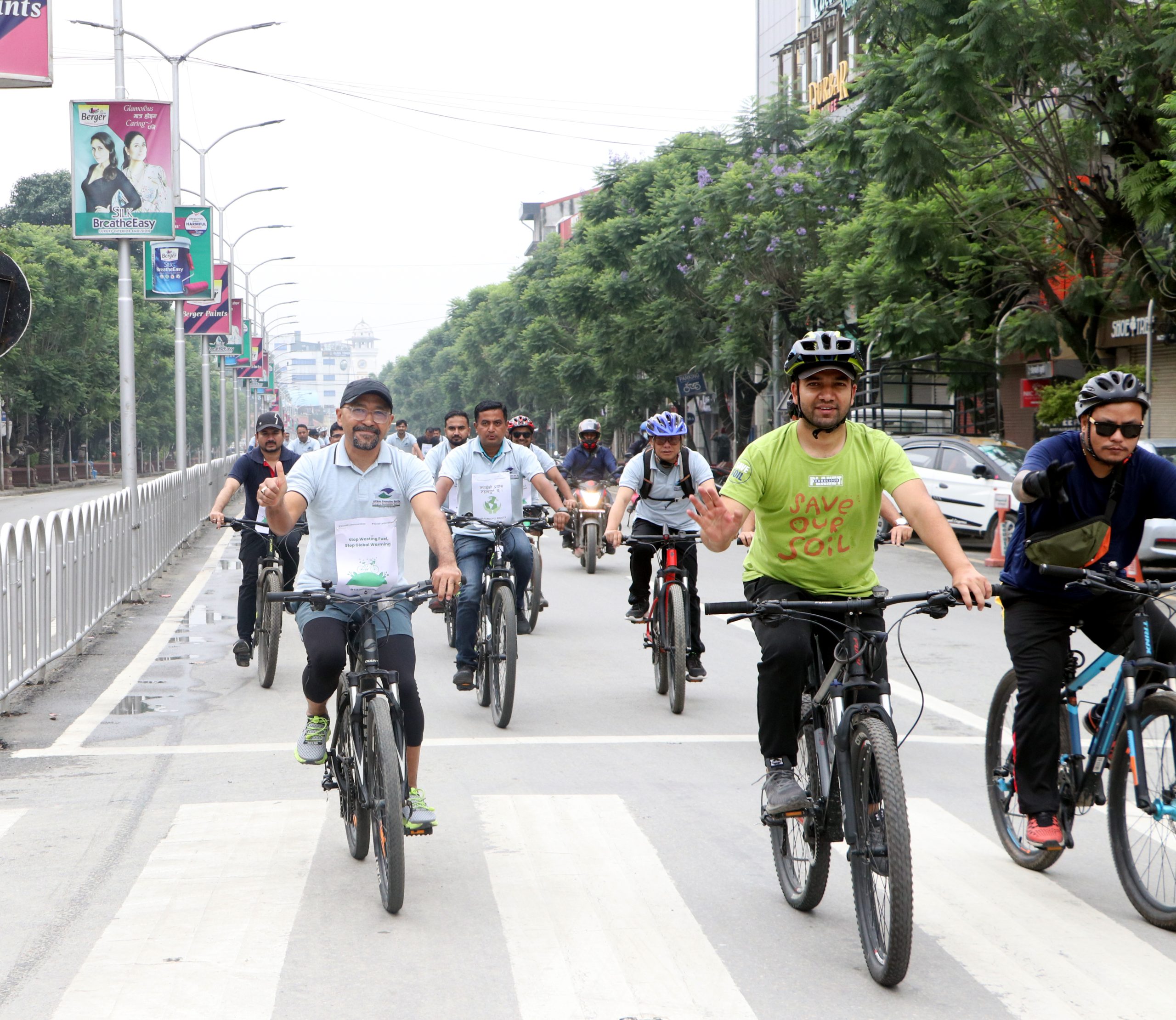 समाज र देशको हितका लागि इन्धन खपत घटाउने समग्र देशको प्रयासमा केही इट्टा थप्ने उद्देश्यले “इन्धन वचाउ पृथ्वी बचाउ” “साईकल चलाउ ईन्धन बचाउ” भन्ने नाराका साथ वातावरण दिवसका दिन आयोजना गरिएको यस साईकल र्यालिमा सम्पूर्ण व्यक्तित्वहरुको उत्साहपूर्वक सहभागिता रहेको थियो ।
