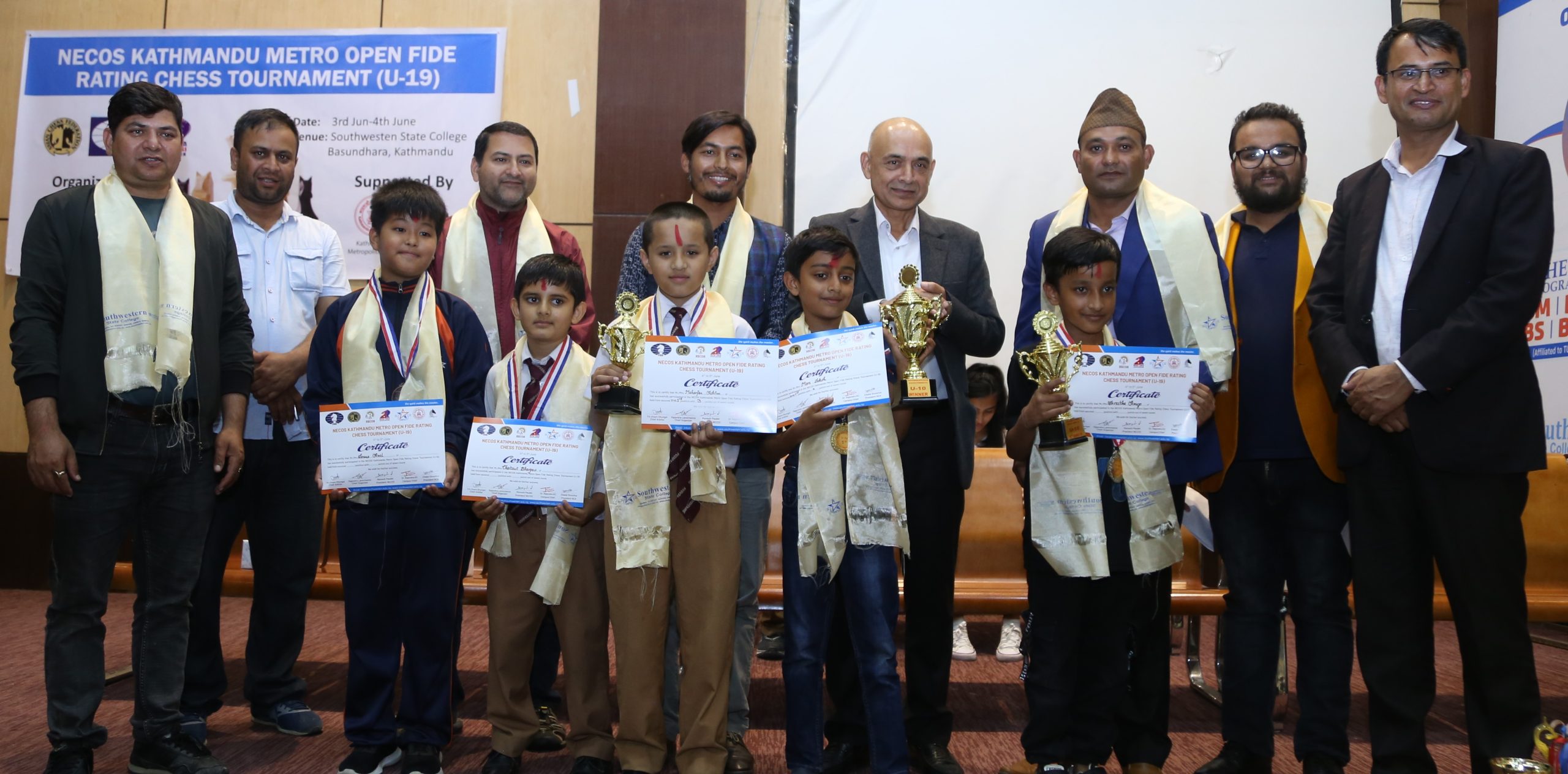 प्रतियोगिताका विजेता खेलाडीलाई नेपाल खेलकुद महासंघका स्कुल विभाग प्रमुख प्रभात विक्रम कटवाल, साउथ वेस्टर्न स्टेट कलेजका प्रिन्सिपल डा. राजेन्द्र केसी, नेपाल बुद्धिचाल संघका सदस्य अन्र्तराष्ट्रिय आर्विटर उमेश केसी, ईन्टरनेसनल मोटिभेसनल स्पीकर भुवन राज चतौट, नेकोसका केन्द्रिय सदस्य नवराज खरेल, प्रमुख आर्विटर उतम ढुंगेल, कार्यक्रम संयोजक मिसन बास्कोटा, साउथ वेस्टर्न स्टेट कलेजका प्रोग्राम कोर्डिनेटर राजेन्द्र प्रसाद लामिछाने, स्पोर्टस डिपार्टमेन्ट प्रमुख सुदर्शन जमकटेल लगायतले मेडल, सर्टिफिकेट तथा ट्रफी प्रदान गरे ।