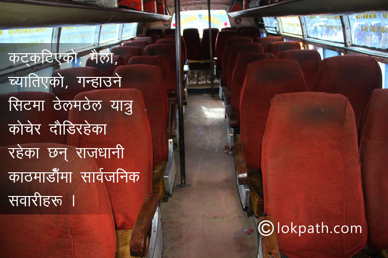 सडकमा थुप्रिएको फोहोर, सास फेर्ने हावामा फोहोर, खानेपानीमा फोहोर झेलिरहेका हामीलाई सार्वजनिक यातायातको फोहोर सिट सामान्य लाग्न सक्छ ।