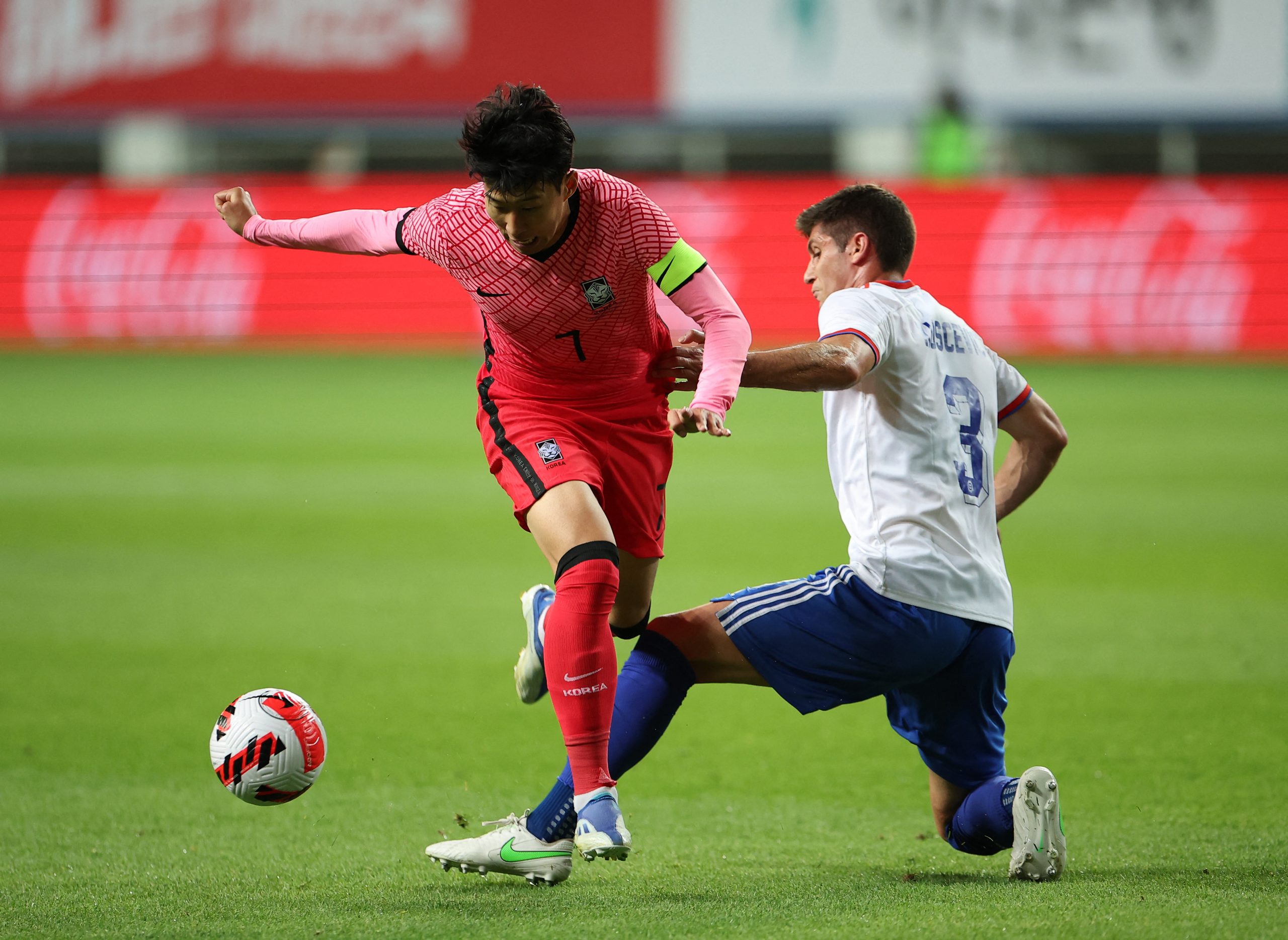 Soccer Football – International friendly – South Korea v Chile – Daejeon World Cup Stadium, Daejeon, South Korea – June 6, 2022 South Korea’s Son Heung-min in action with Chile’s Benjamin Kuscevic REUTERS/Kim Hong-Ji