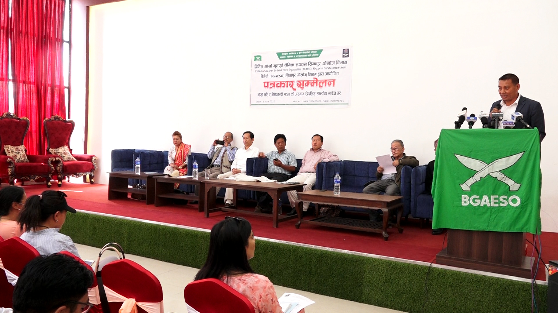 पत्रकार सम्मेलनमा बोल्दै ब्रिटिश–गोर्खा भुतपूर्व सैनिक संगठन सिङ्गापुर गोर्खाज विभागका प्रमुख पलबहादुर घर्तीले असार ३ गते काठमाडौंको रत्नपार्कस्थित शान्तिवाटीकामा शान्तिपूर्ण आन्दोलन गर्ने बताए । उनले भुतपूर्व सैनिकहरुको माग सरकारले सम्बोधन गर्ने गरीबिरोध प्रदर्शन तथा बेलायती राजदुतावास अगाडि एक घण्टा धर्ना गर्ने कार्यक्रम तय भएको बताए ।