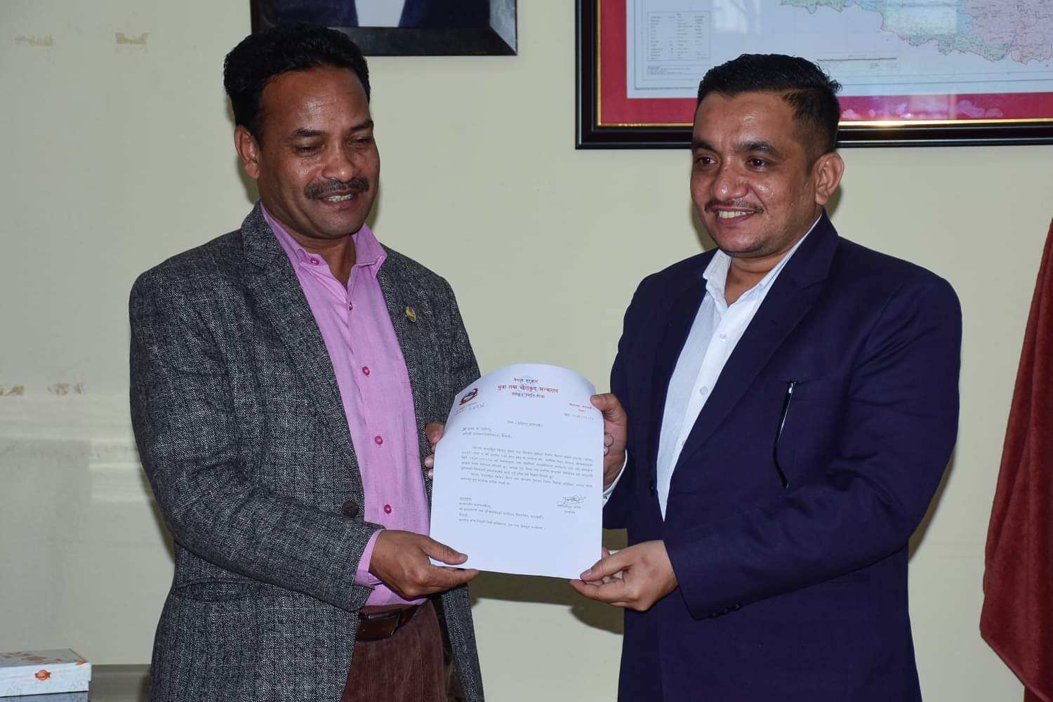 खेलकुदमन्त्री गहतराजद्वारा शाहीलाई नियुक्ति पत्र हस्तान्तरण