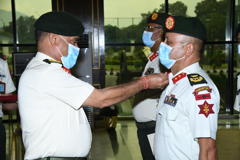 सैनिक मुख्यालय जंगी अड्डामा आज आयोजित एक कार्यक्रमबीच दर्ज्यानी चिन्ह प्रदान गरिएको हो । उनीहरुलाई जेठ २३ गतेको मन्त्रिपरिषद्को बैठकले उपरथी दर्जामा पदोन्नती गरेको थियो ।