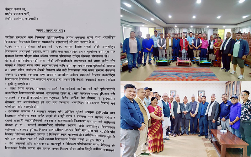 सर्वोच्चको फैसलाका कारण निजगढमा विमानस्थल निर्माण नहुने आशंका व्यक्त गर्दै उनीहरु विभिन्न मन्त्री र दलका शीर्ष नेताहरूसँग भेटघाट गरेर आफ्ना माग पेस गरेका हुन् ।