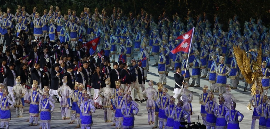 जाकार्ता । १८ औँ एशियाली खेलकुद ‘एशियाड’मा नेपालका लागि भारत्तोलन खेलाडी कमल बहादुर अधिकारीले चन्द्र सुर्य अंकित राष्ट्रिय झण्डा बोकेका थिए ।