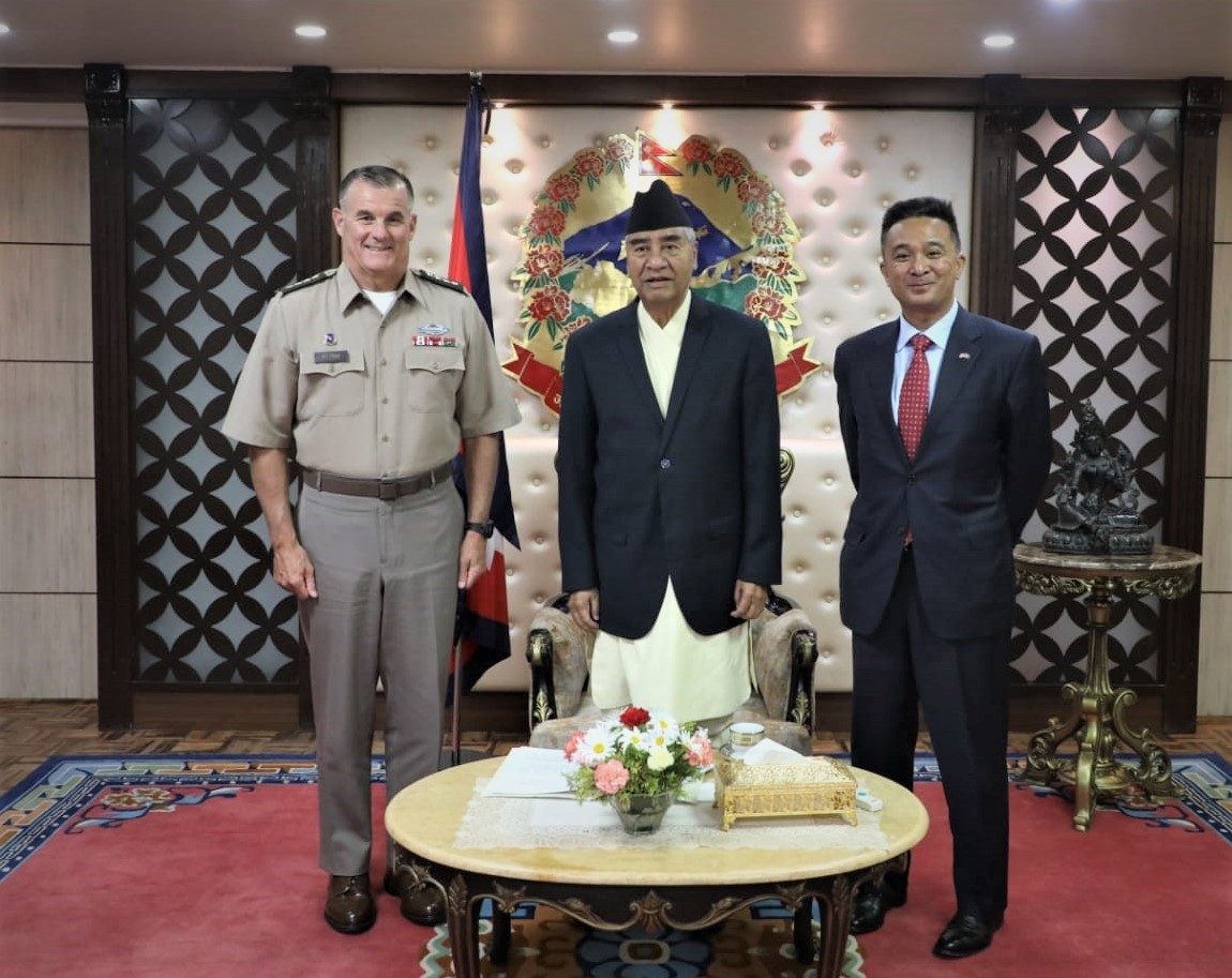 काठमाडौं । अमेरिकी सेनाको एसिया प्रशान्त क्षेत्रका कमान्डिङ जनरल चार्ल्स ए फ्लिनले प्रधानमन्त्री शेरबहादुर देउवासँग शिष्टाचार भेट गरेका छन् ।