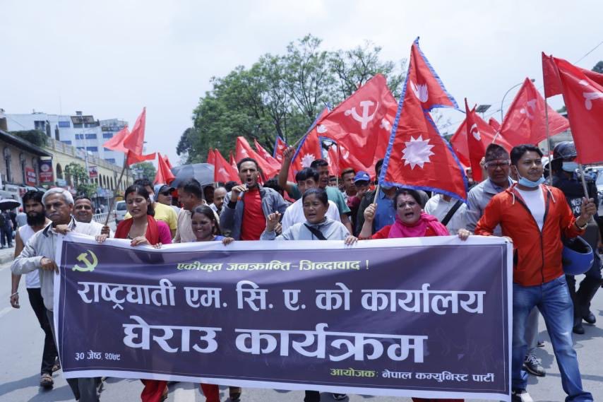रत्नपार्कस्थित शान्तिबाटिका र कमलादीमा भेला भई दरबारमार्गमा रहेको एमसीसीको नेपालस्थित मुख्यालय पुगेर प्रदर्शन गरेको हो ।