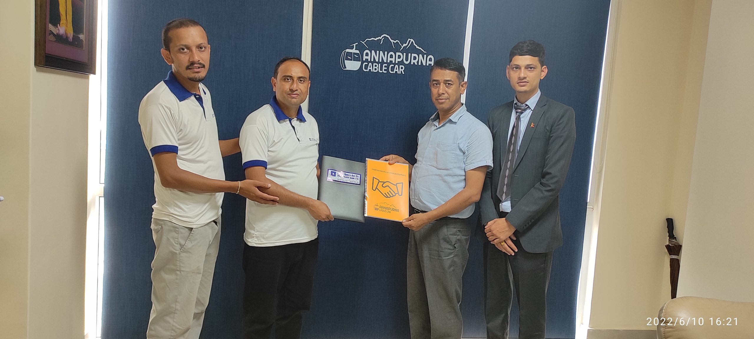 सम्झौता पत्रमा बैंकका तर्फबाट पोखरा क्षेत्रीय प्रमुख बिशाल लामिछाने तथा अन्नपूर्ण केबलकारका तर्फबाट महाप्रबन्धक दिनेश पौड्यालले हस्ताक्षर गरेका छन् ।