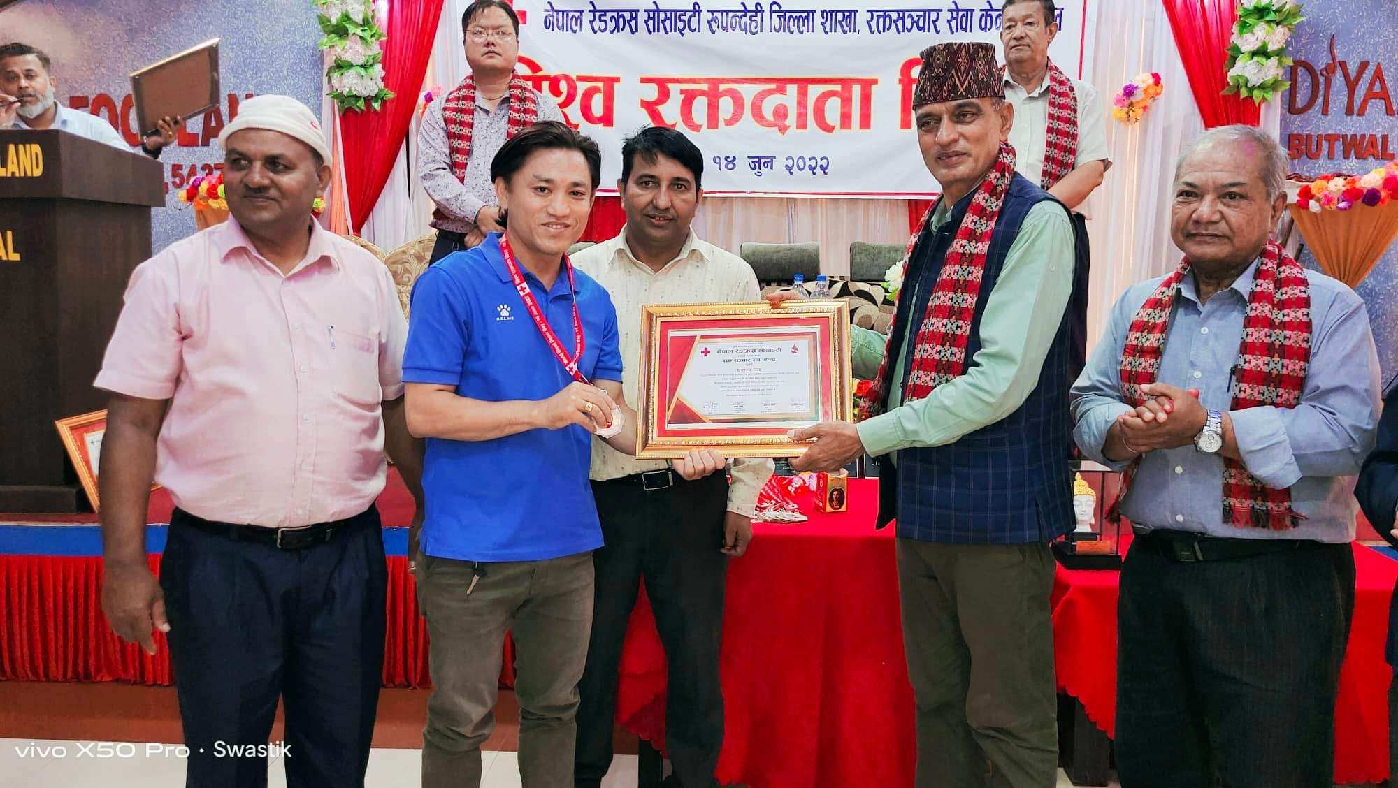 भैरहवा । नेपाल रेडक्रस सोसाइटी रुपन्देही जिल्ला शाखा रक्तसंचार सेवा केन्द्र बुटवलले विश्व रक्तदाता दिवसको अवसरमा रक्तदाता सम्मान कार्यक्रम गरेर मनाएको छ। १४ जुनलाई विश्वभर नै रक्तदाता दिवसका रुपमा मनाईँदै आएको छ।