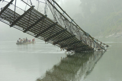 भेरीमा २०७१ मा ठूलो बाढी आएको थियो । सो बाढीले पञ्चपुरी नगरपालिका–१० मा सो झोलुङ्गे पुल बगाएको थियो । बाढीबाट ९३ परिवार विस्थापित भएका थिए । त्यसयता भेरी तर्न डुङ्गाको प्रयोग गरिँदै आएको छ ।