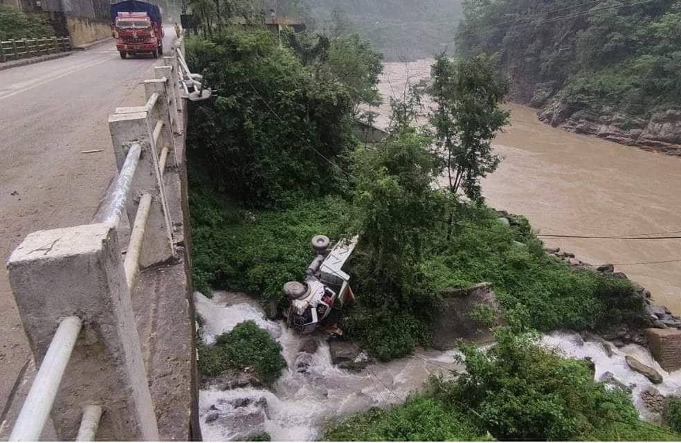मुग्लिङबाट आबुखैरेनीतर्फ जाँदै गरेको ग १ क ४४६९ नम्बरको टिपर आज बिहान साढे ४ बजे अनियन्त्रित भई पुलबाट अन्दाजी २० मिटर तल खोलामा खसेको थियो ।