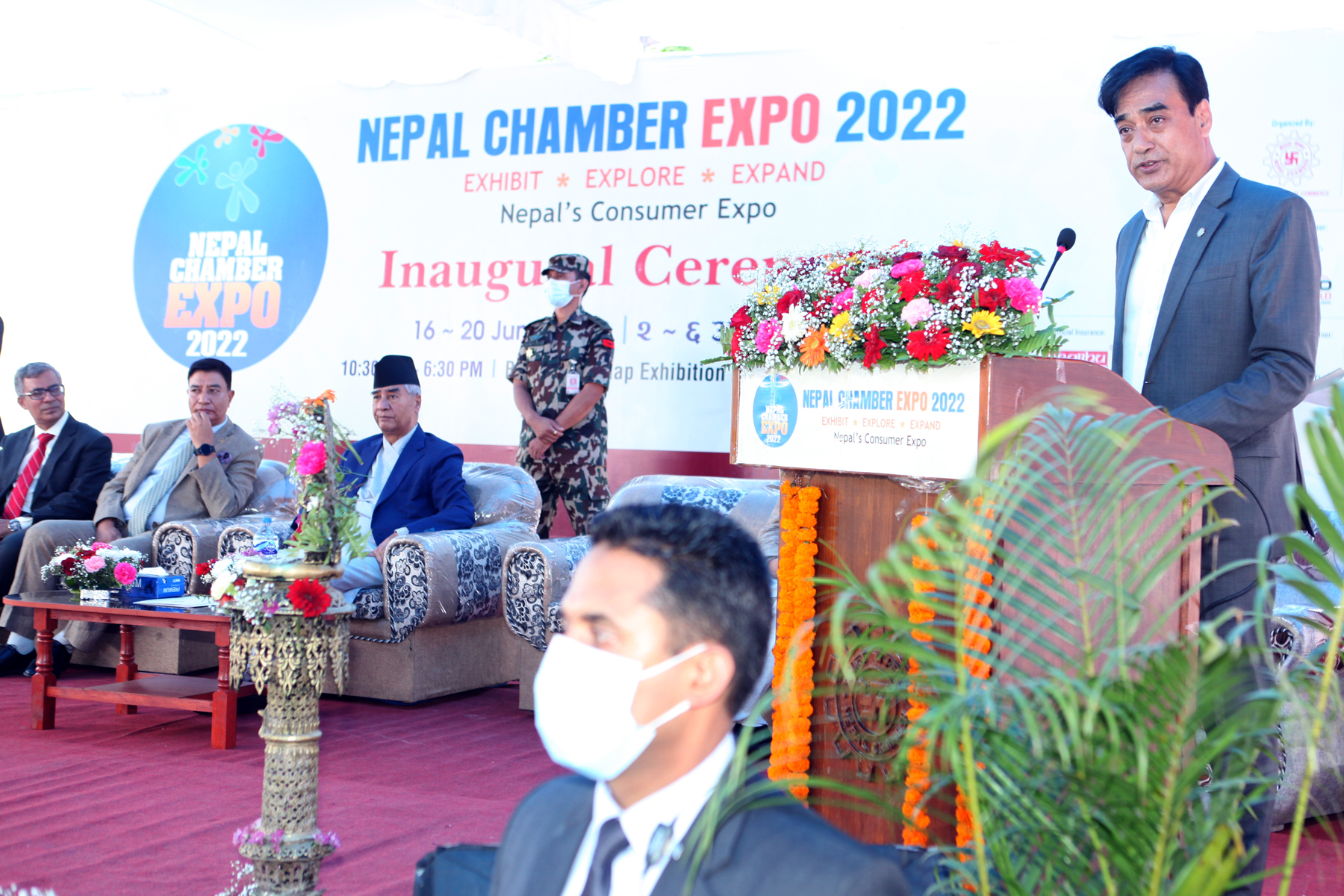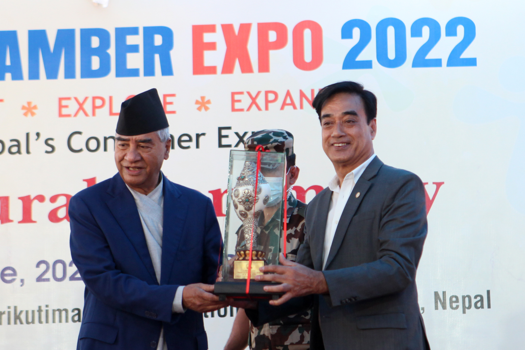 पाँचौँ संस्करणको चेम्बर एक्स्पोको उद्घाटन गर्दै प्रधानमन्त्री देउवाले व्यापार घाटा न्यूनीकरण गर्नु मुलुकका लागि मुख्य चुनौती भएको बताएका छन् । स्वदेशी उत्पादनलाई बढी भन्दा बढी गुणस्तरीय बनाई निर्यात प्रर्वद्धन मार्फत व्यापार घाटा न्यूनीकरण गर्न पनि प्रधानमन्त्री देउवाले आग्रह गरेका छन् ।