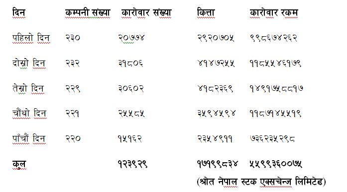 यस्तो रह्यो यो साता दैनिक शेयर कारोबार (संख्या र रुपैयाँमा)