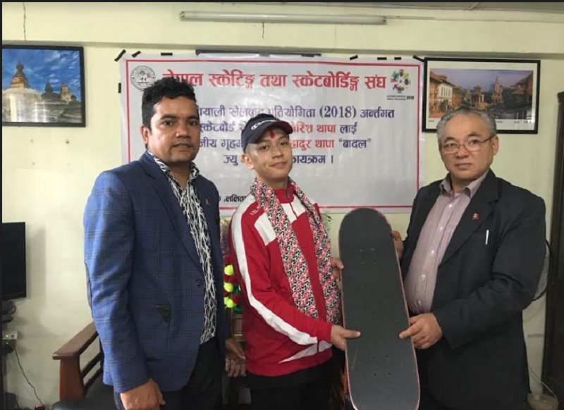 काठमाडौं । इन्डोनेशियामा जारी १८ औँ एशियाली खेलकुद ‘एशियाड’ मा सहभागी हुने फ्रिस्टाइल स्केटबोर्डका खेलाडी नेरिश थापालाई बिदाई गरेका छन् ।