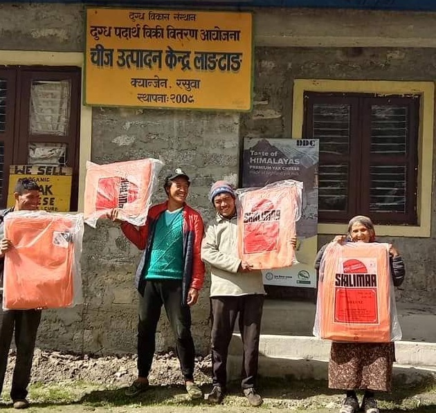 लाङटाङ चिज उत्पादन केन्द्र क्यान्जिनका प्रमुख ग्याल्बु तामाङले कृषकलाई नुन र त्रिपाल अतिआवश्यक पर्ने भएकाले वितरण गरिएको बताए । दूधमा फोहर पर्न नदिन र कृषकलाई दूध दुहुन सहज होस् भन्ने हिसाबले त्रिपाल वितरण गरिएको उनको भनाई छ । ‘चौरीलाई दिनका लागि नुन पनि नभई नहुने कुरा हो’, उनले भने, ‘यसका लागि हामीले कृषकलाई केही सहयोग गरेका हौं ।’