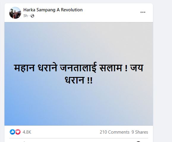मेयर साङ्पाङलले आजको सामाजिक सञ्जालका यात्रा बिहान ७ः०३ बजे ‘महान धराने जनतालाई सलाम ! जय धरान !’ भन्दै सुरु गरेका छन् ।