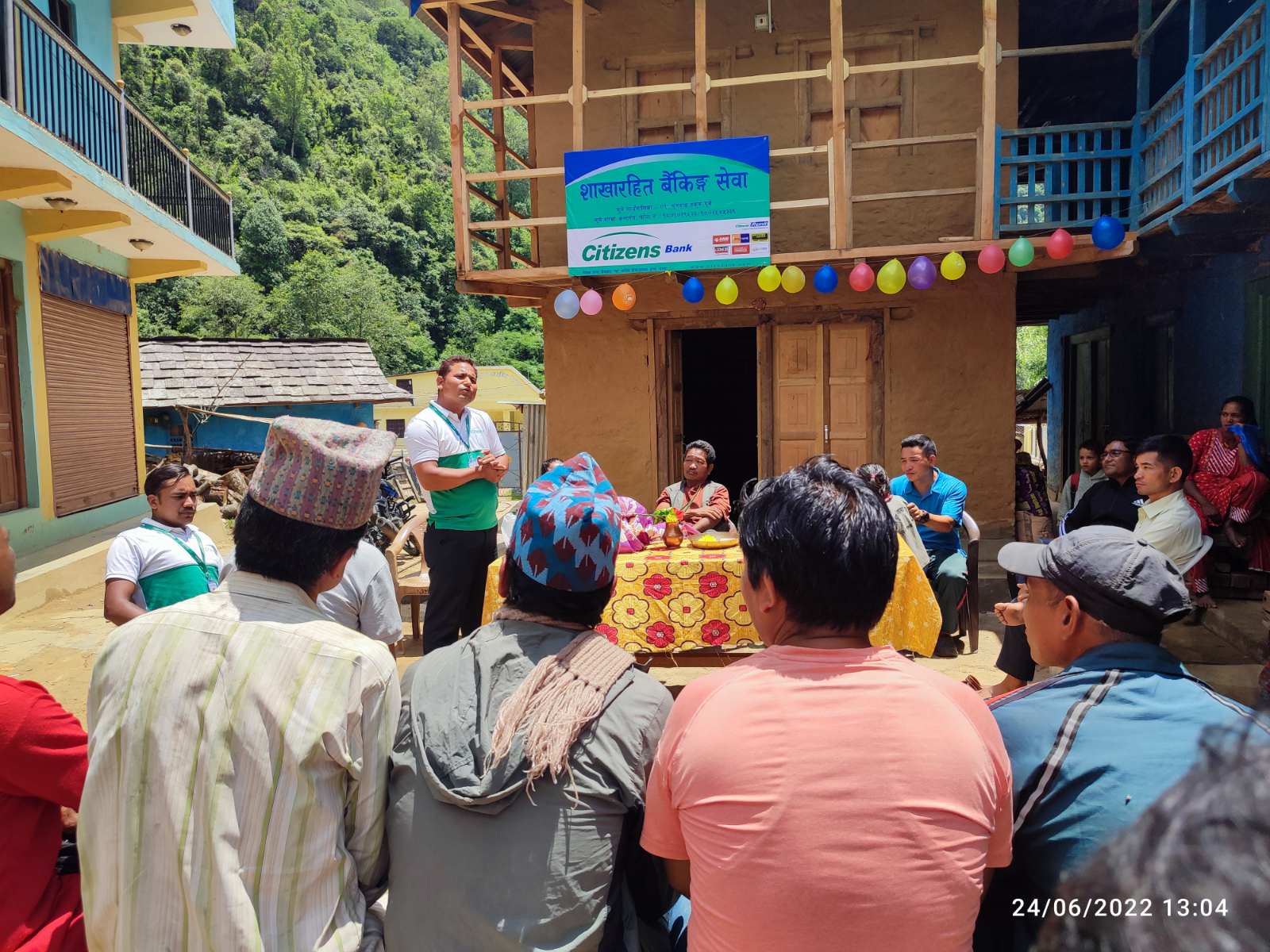 यसै क्रममा बैंकले रुकुम जिल्लाको भुमे गाउँपालिका –०९ चुनवाङ रुकुम पुर्व यहि असार १०, गतेबाट ९६ ओैँ शाखारहित बैंकिङ सेवा प्रारम्भ गरेको हो । सो स्थानमा सेवा संचालनका लागि स्थानीय व्यवसायी भिम प्रसाद पुनलाई व्यवसायिक प्रतिनिधि नियुक्त गरिएको छ ।