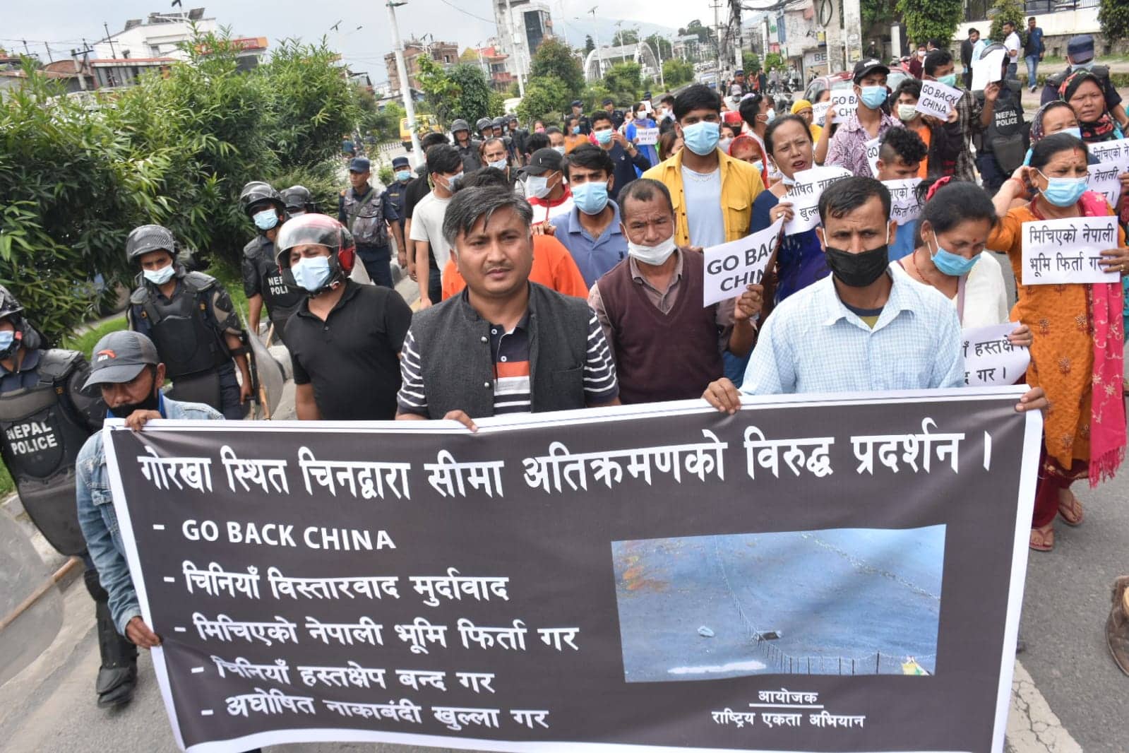 माइतिघरबाट सुरु भएको विरोध र्‍याली चीन विरोधी नारा लगाउँदै नयाँ बानेश्वर पुगेको थियो। विरोध र्‍यालीमा ‘गो ब्याक चाइना, चिनियाँ विस्तारवाद बन्द गर, मिचिएको भूमि फिर्ता गर, चिनियाँ हस्तक्षेप बन्द गर, अघोषित नकाबन्दी खुल्ला गर’ लगायतका नारा लगाईएको थियो।
