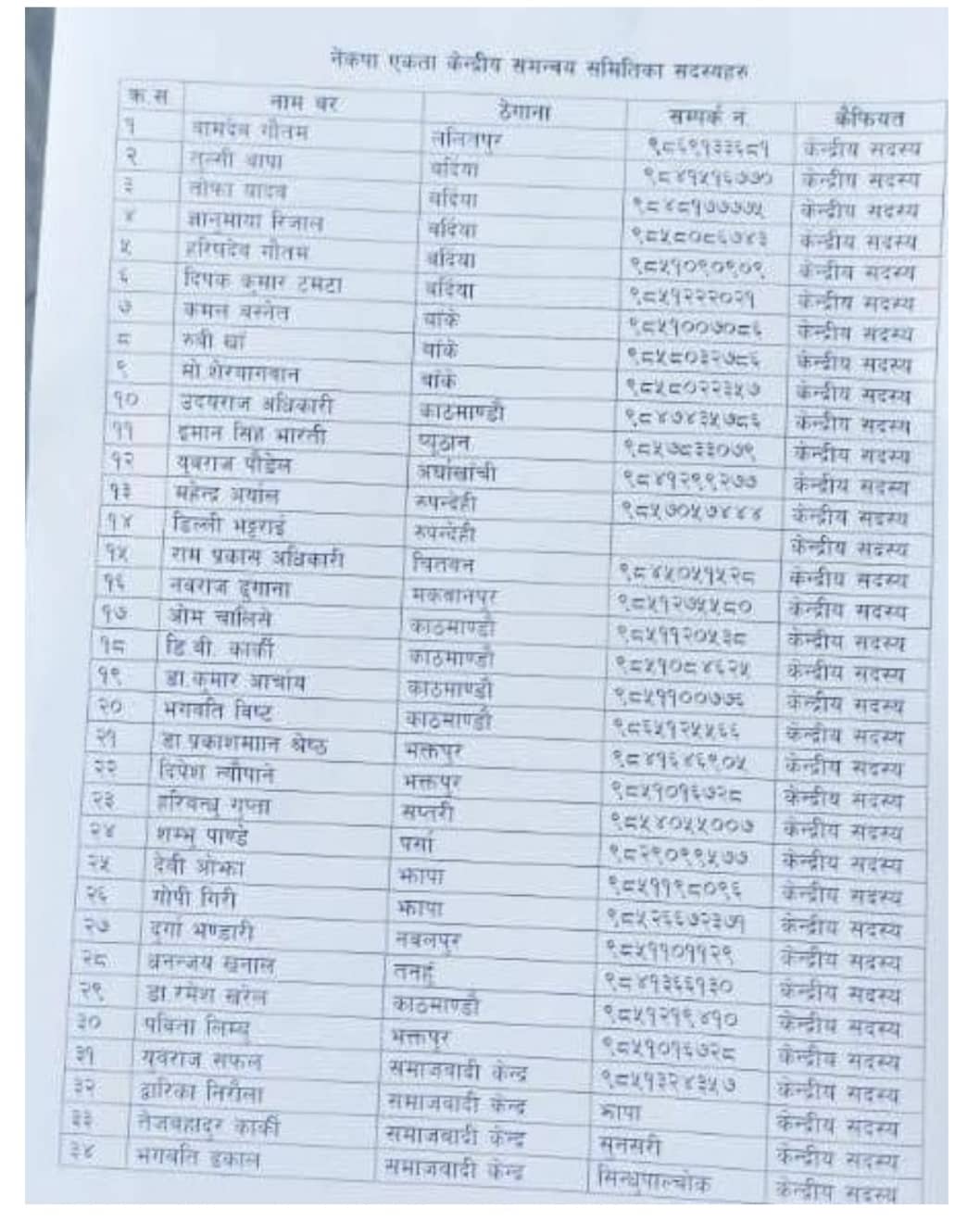 तत्काललाई ६९ जनाको केन्द्रीय समिति बनाउने गरी गौतमले घोषणा गर्न लागेको नयाँ पार्टीको नाम नेकपा (एकता राष्ट्रिय अभियान) हुनेछ ।