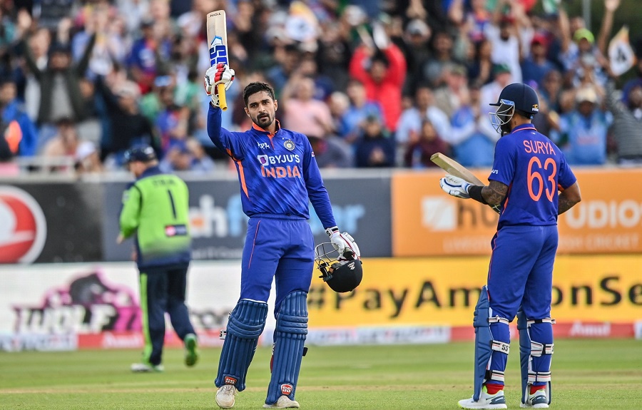 भारतका दीपक हुडाले आक्रामक ब्याटिङ गर्दै ५७ बलमा १०४ रन बनाए । यस्तै, सञ्जु स्यामसनले ७७ रन जोडे । घरेलु टोली आयरल्यान्डका मार्क आदिरले सर्वाधिक ३ विकेट लिए ।
