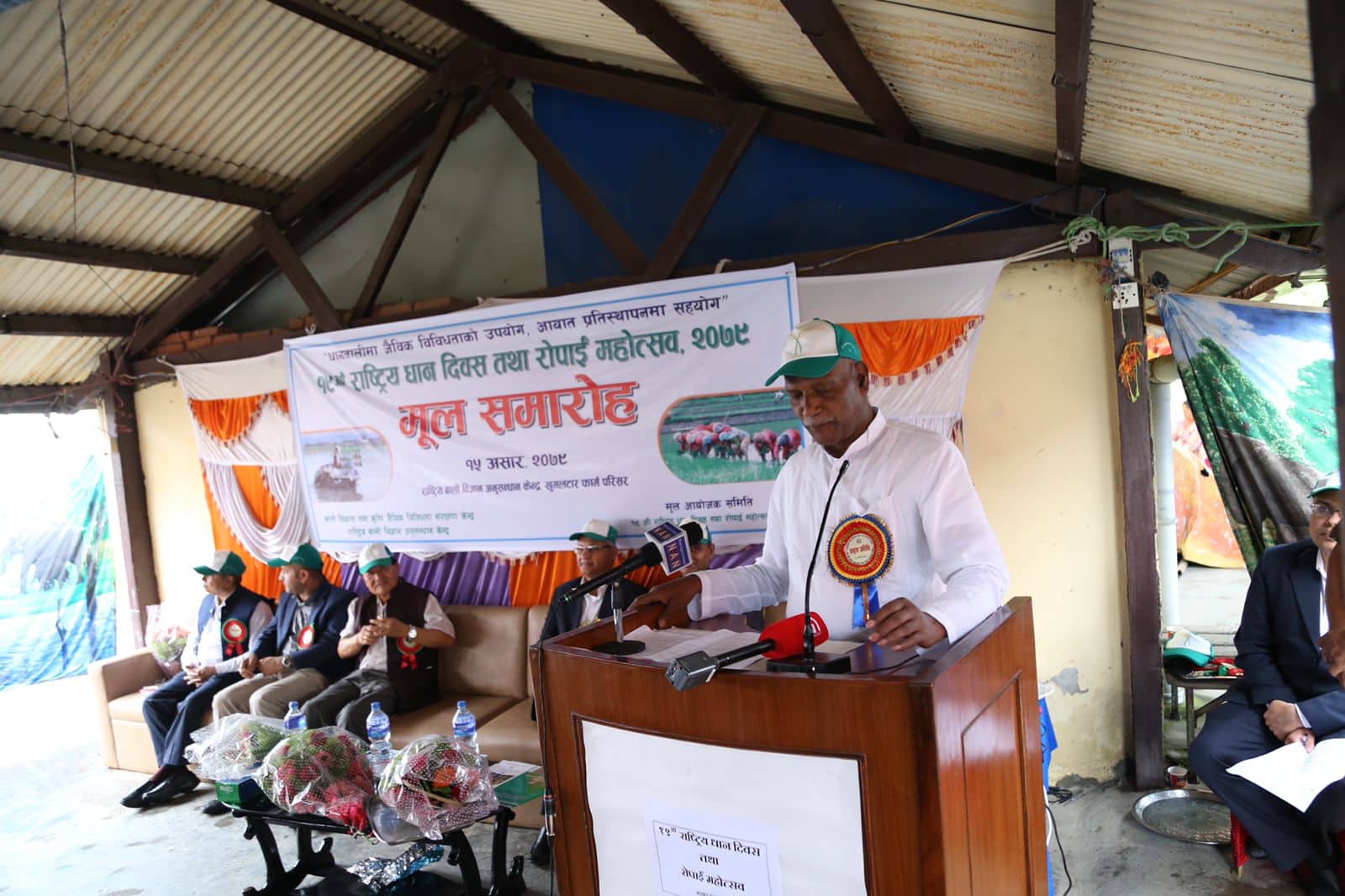 राष्ट्रिय धान दिवसको अवसरमा बुधबार राष्ट्रिय बाली विज्ञान अनुसन्धान केन्द्र खुमलटार फार्म परिसरमा आयोजित १९औँ राष्ट्रिय धान दिवस तथा रोपाइँ महोत्सव २०७९ कार्यक्रममा मन्त्री यादवले मेसिन चलाएर धान रोपेका हुन् ।