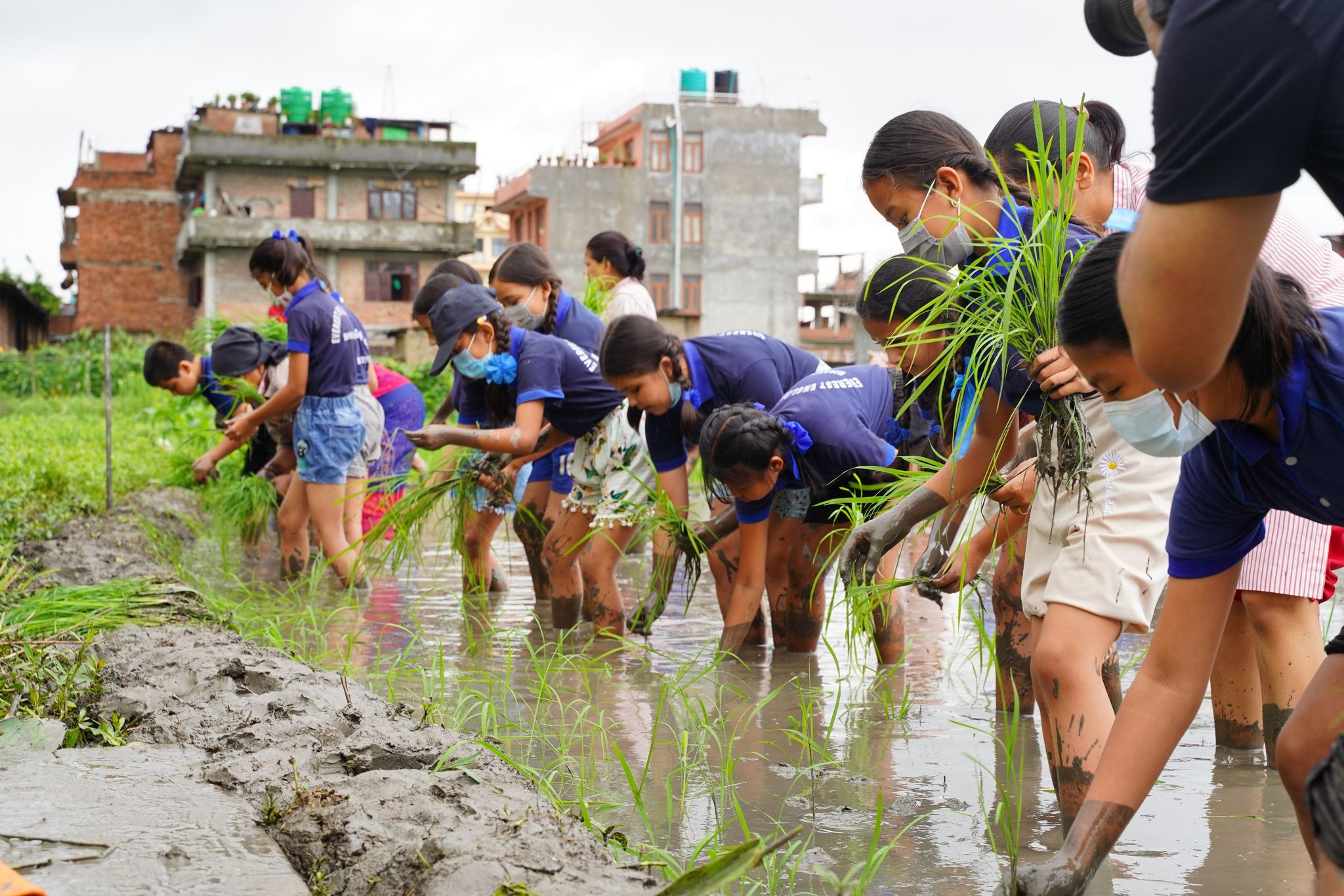 भक्तपुर । सधैं कक्षाकोठामा रहने भक्तपुरको एउटा स्कुलका विद्यार्थी बुधबार धान रोपाईमा रमाएका छन् । भक्तपुर नगरपालिका वडा नं २ मिवाछें व्यासीस्थित एभरेष्ट इंग्लिश स्कुलका विद्यार्थी रोपाईमा रमाएका हुन् ।