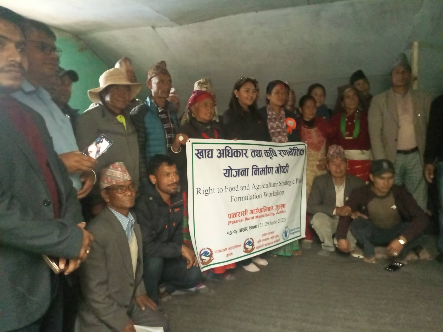 खाद्यमा नागरिकको पहुँच सुनिश्चित गर्न पातारासी गाउँपालिकाका प्रमुख, उपप्रमुख, कर्मचारीहरू र सरोकारवालाहरूको सहभागितामा खाद्य अधिकार तथा कृषि रणनीतिक योजना निर्माण गर्न थालिएको विश्व खाद्य कार्यक्रमका कर्णाली प्रदेश संयोजक भानु लिम्बूले बताए । पातारासीमा खाद्य अधिकार तथा कृषि रणनीतिका योजनाको मस्यौदा निर्माण गर्न छलफल सुरु भएको छ ।