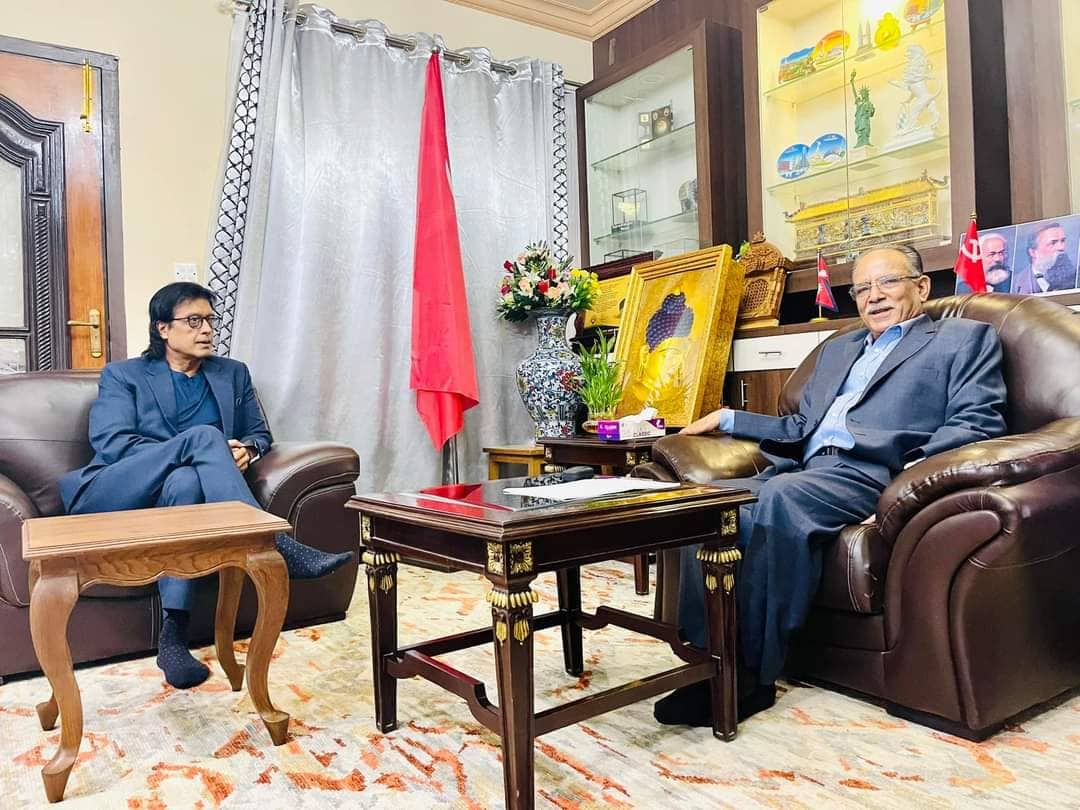 काठमाडौं । पूर्वप्रधानमन्त्री एवं माओवादी केन्द्रका अध्यक्ष पुष्पकमल दाहाल ‘प्रचण्ड’ र महानायक राजेश हमालबीच भेटघाट भएको छ ।