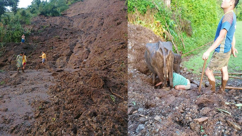 खोटाङ । भारी वर्षापछि गएको पहिरोले खोटाङमा एक घर बगाउनुका साथै पशुचौपाय पुरेको छ । शुक्रबार रातिको भारी वर्षसँगै करिब पाँच मिटर माथिबाट खसेको पहिरोले रावाबेँसी गाउँपालिका–६ हौंचुरका बलराम खत्रीको घर बगाएको हो । खत्री परिवार इटहरीमा सरिसकेकाले मानयीय क्षति नभएको वडाध्यक्ष चिरञ्जिवी कार्कीले बताए ।
